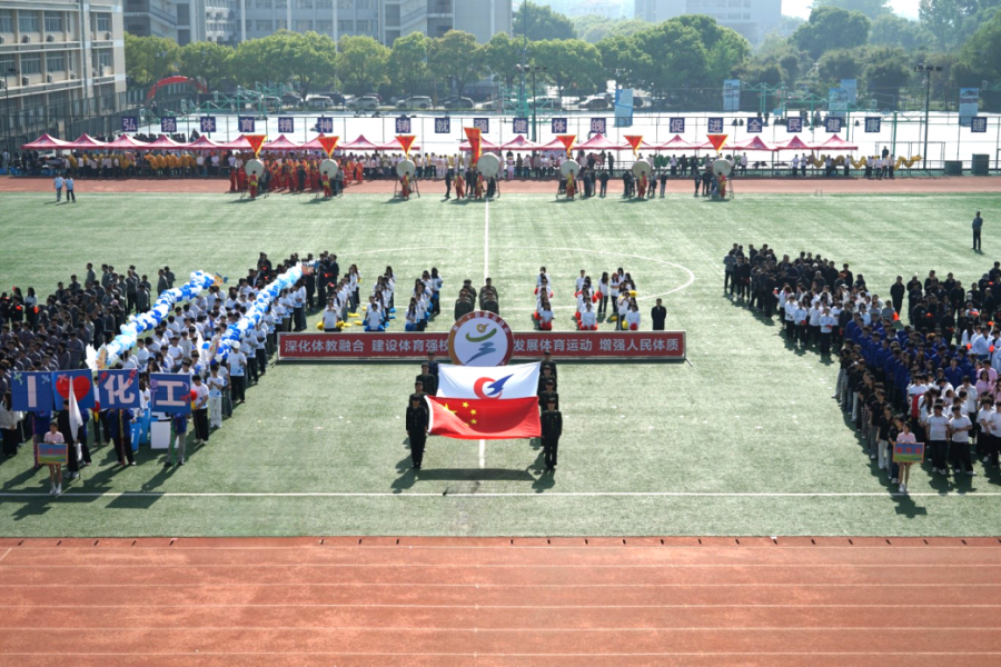 在激昂的《运动员进行曲》中,国旗、会徽、彩球、彩旗、裁判员及各二级伟德国际1949师生方阵依次入场。各方阵步伐整齐、口号嘹亮,将工程学子的朝气与创意展现得淋漓尽致。部分方阵还结合专业特色与传统文化,融入舞蹈、情景表演等元素,赢得现场阵阵掌声。党委副书记、校长基国林在开幕词中指出,学校始终坚持“五育并举”,将体育作为立德树人的重要载体,龙舟竞渡、彩带飞龙、舞龙舞狮等中华传统体育项目不仅融入课堂教学,更成为校园文化的亮丽名片。他强调,本届运动会不仅是速度与力量的比拼,更是对奥林匹克精神与中华体育精神的传承,希望全体师生以健康的体魄和饱满的精神投入到学习和工作中,为创建全国有特色、行业能领军的应用技术大学而努力奋斗。